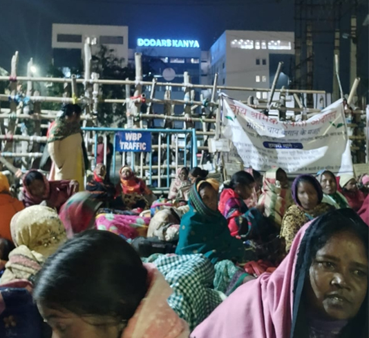 Later that night, as temperatures dropped to around 12°C, Migni Oraon, a woman worker from Hantapara Tea Garden sitting on dharna under the open sky, fell seriously ill and had to be rushed to hospital.