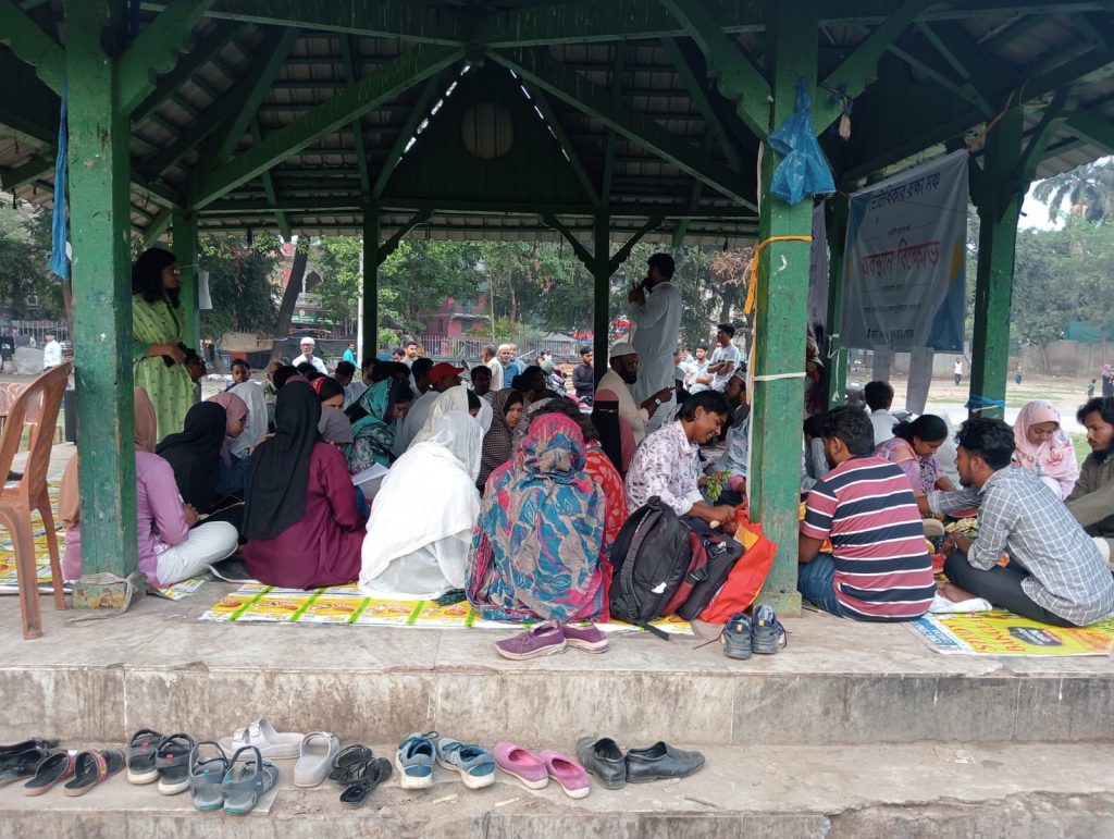 Anwari ji came to the protest gathering all the way from Uttar Dinajpur. She said she came to the protest to understand the SIR process, to know what her rights are. She came with a heavy heart, drowning in unfathomable uncertainty. She stressed the practical ramifications of the name deletions. “We are poor people”, she said. “If our names are deleted, we will not receive any help from the government. How will we live, then? How will we survive? We need to know this. We need to understand this. This is why I am here today.” Indeed, Anwari ji had come to the demonstration with nothing but a lot of pain and even more hope. She came in search of people who would stand with her shoulder to shoulder and demand their rights and hers alike.