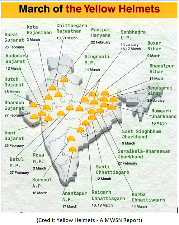 3. While some of the strikes were in mega-PSUs like refineries of Indian Oil Corporation (Barauni, Panipat, Vadodara), Western Coal Field (Betul – Madhya Pradesh), NTPC (total 3 different          strikes – Rehan and Singrauli, both at Sonbhadra – UP; Khalegaon, Bhagalpur – Bihar), in terms of private sectors, major big companies affected by the protests are: